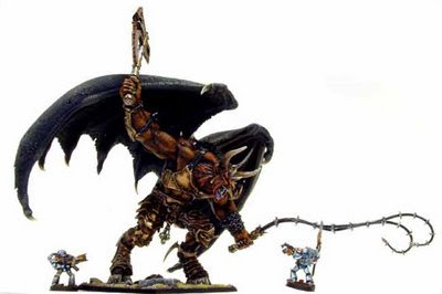 Through a recent trade I have come into possession of a Forge World Thirster. I spent a long time trying to figure out how to use it in 40k. The problem with all of the options is lack of true representation of the model. I just don't feel a demon prince stat wise represents the model. Neither does a Demon Codex Bloodthirster. For a while I considered just using it as the 888 point Anggrath but he is apocalypse only. I don't play a lot of apocalypse and that is the same reason I don't own any Titans or other superheavies, as cool as they are.So I decided to apply it towards a fantasy army. The rules in the Fantasy army book seem to represent this model better, at least when compared to the rest of the models he would face. Fantasy also tends to have a lot more "stat upgrade" options.