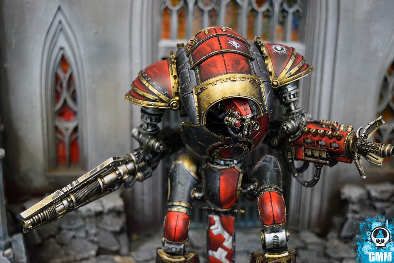 Time for part four of this recap of the 29 Knights project, and this one is the biggest. Individual photos of all 14 Rebel AdMech Knights, and plenty to flip through. Nine Forge World Knights, five Games Workshop, with lots of individuality and conversion. Each knight is pinned throughout in posing with 2mm brass rod atop hand-made bases Every part and panel hand painted.