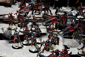 The snow is really to match the client's existing armies and terrain. You might remember the Glooming Lords from a few years ago. But, I think it works quite well and would have done the same even as a one off. I always enjoy throwing snow down on backdrops. Don't know why but the temporary of it and being able to put it down and play around in it to make it realistic feels very old movie magic and tickles me.